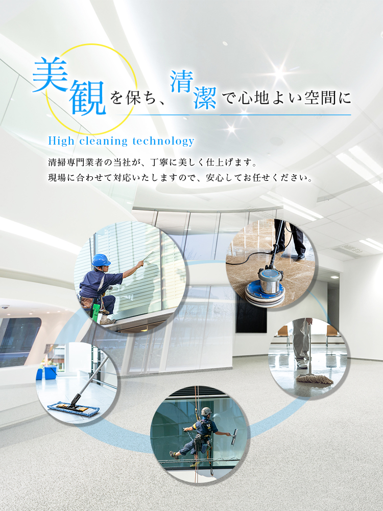 お客様の大切な場所を任せられていることに責任を持ち、隅々まで丁寧に清掃いたしますので、お困りの方はお気軽にお問い合わせください。