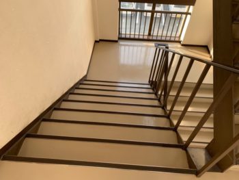 本日は床や階段部分の除菌洗浄・床剥離・ワックス掛けを行いました!!